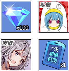 英雄·卡娅、英雄·飞鸟、英雄·本多 钻石*100、飞鸟皮肤·电击疗法、萌新头像·蓝